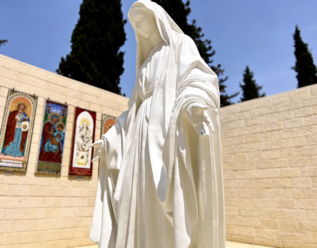 Virgin Mary Marble Statue with Open Arms for Catholic Devotional Spaces