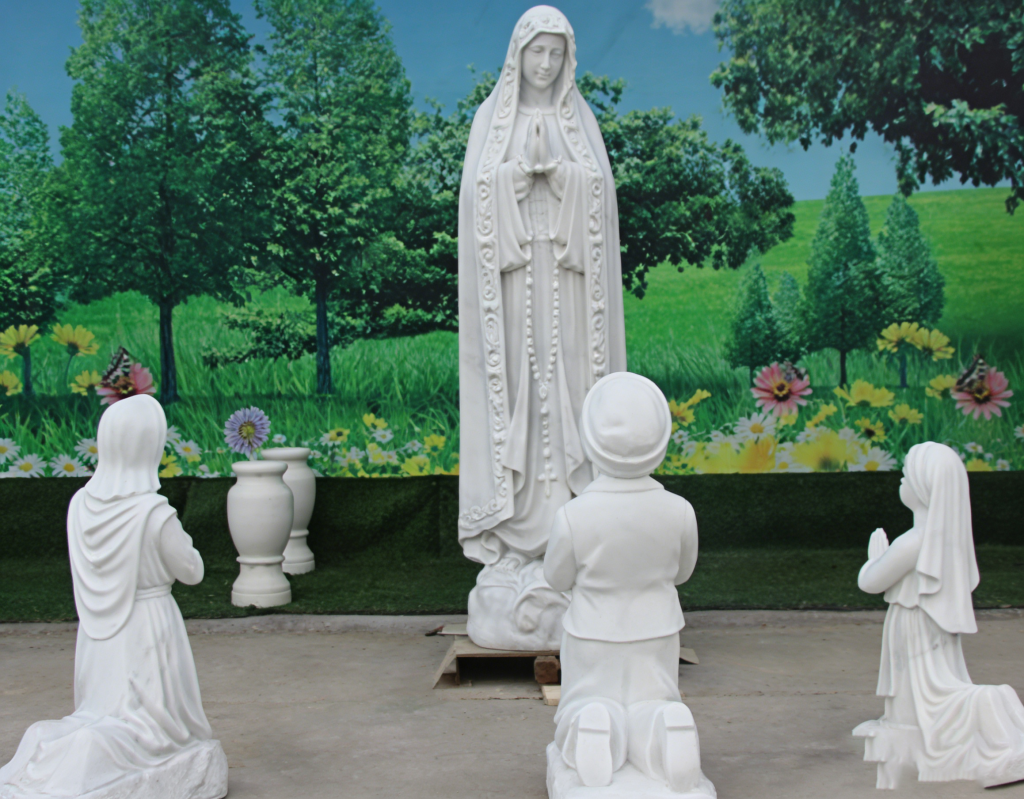 Marble Virgin Mary Statue with Praying Children for Religious Memorials
